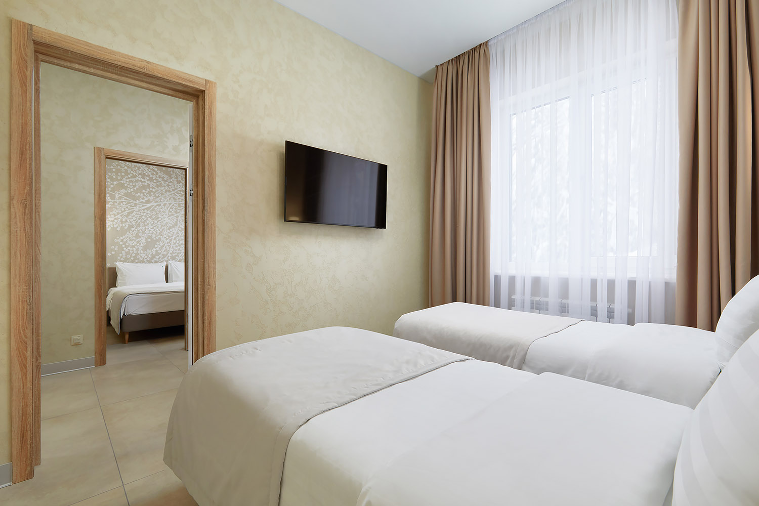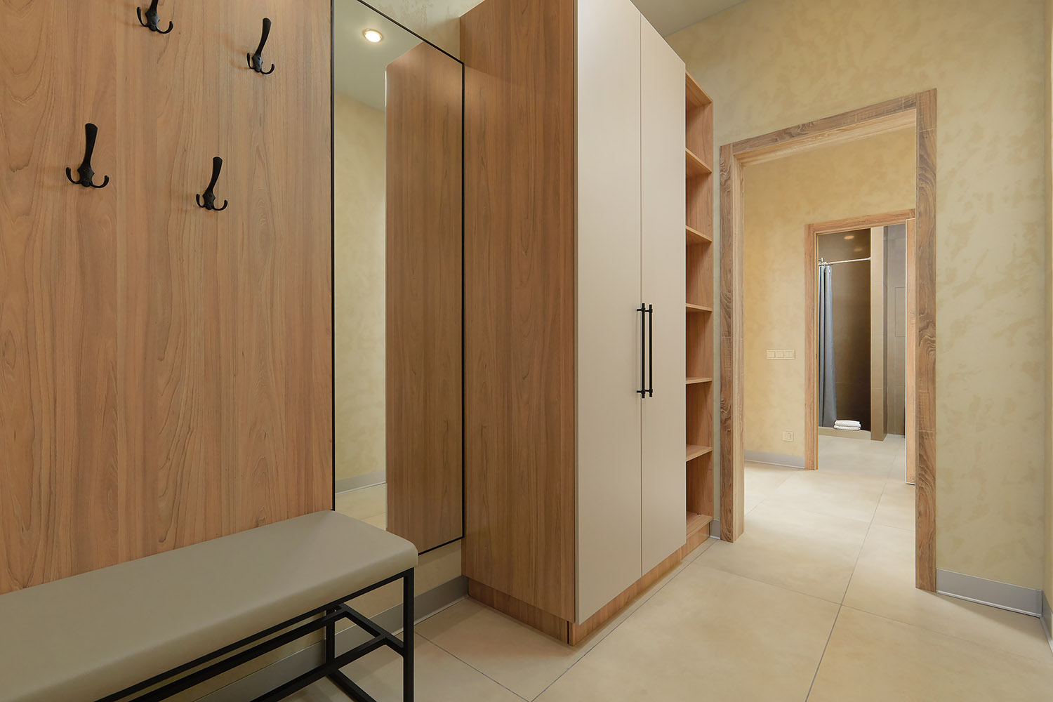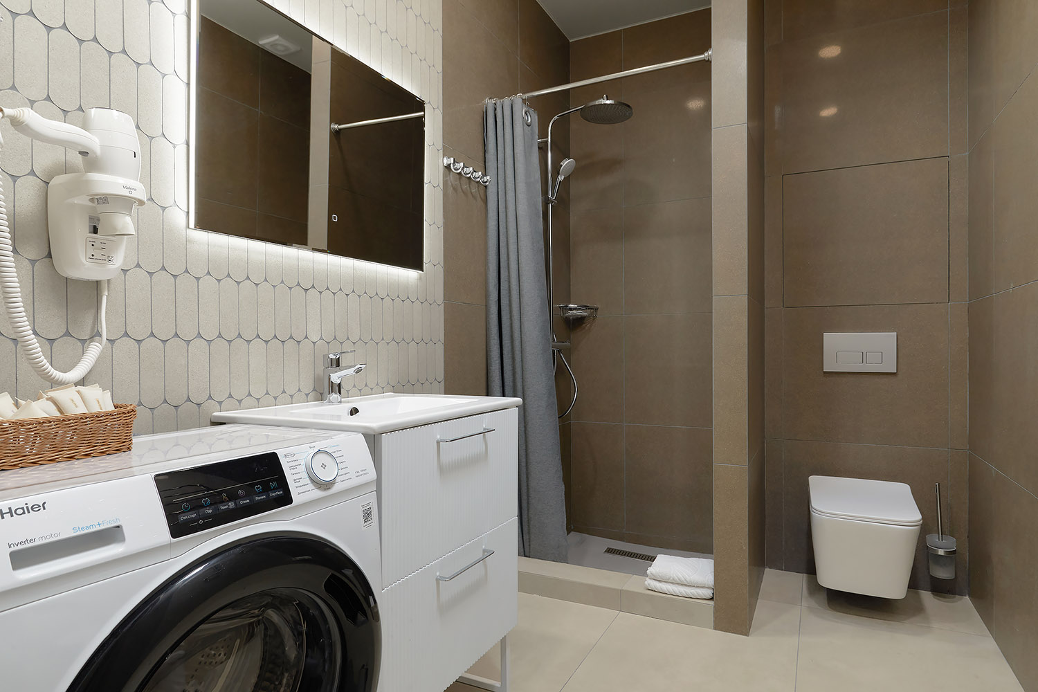 Напольное покрытие: керамогранит, с функцией тёплого пола.