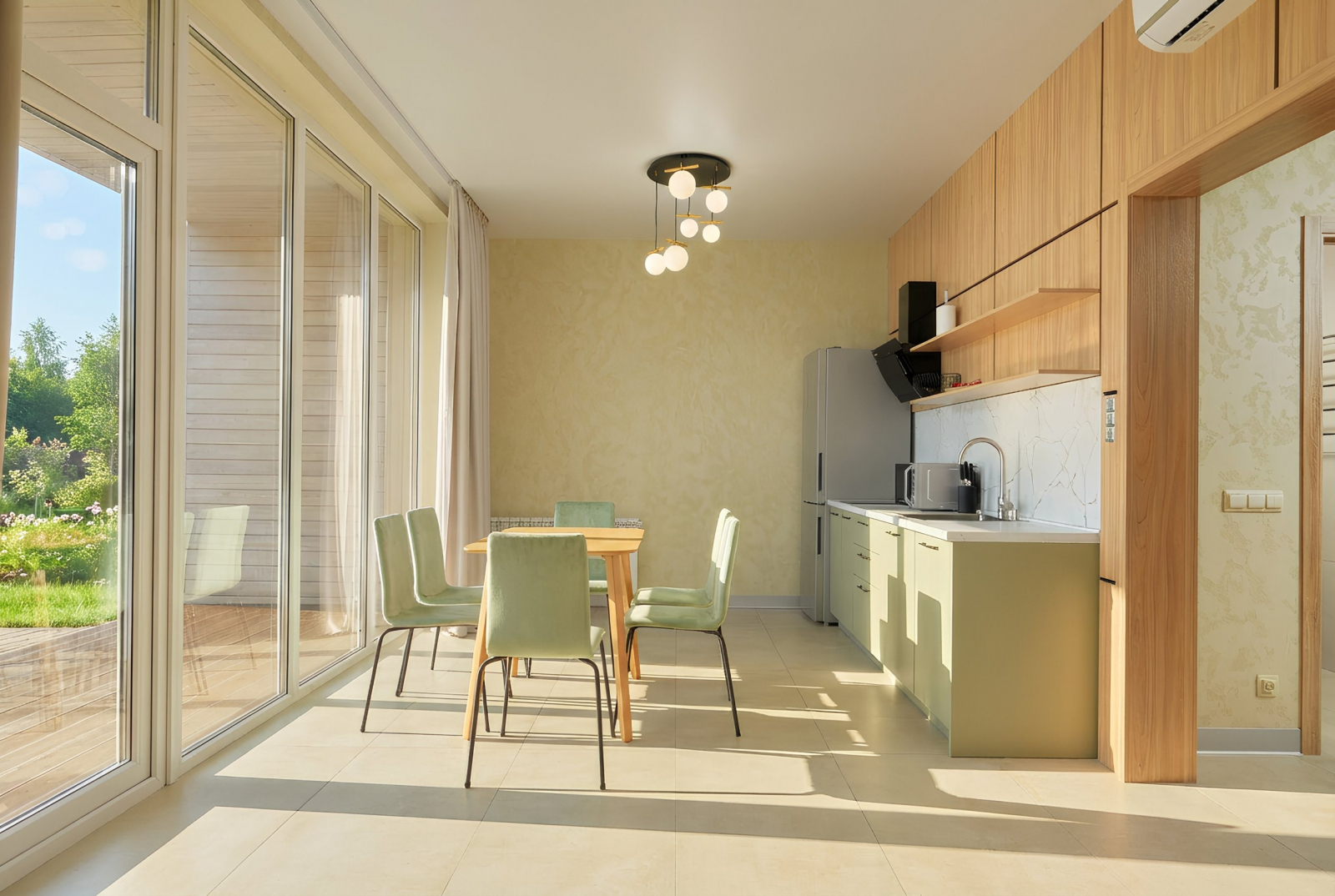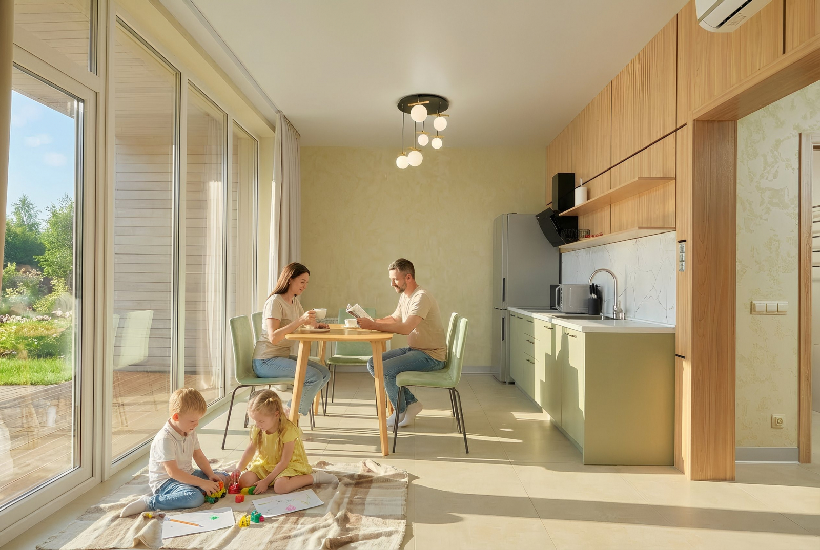 В коттедже возможно размещение до 6 человек. Для детей до 2-х лет включительно возможна установка детского манежа.