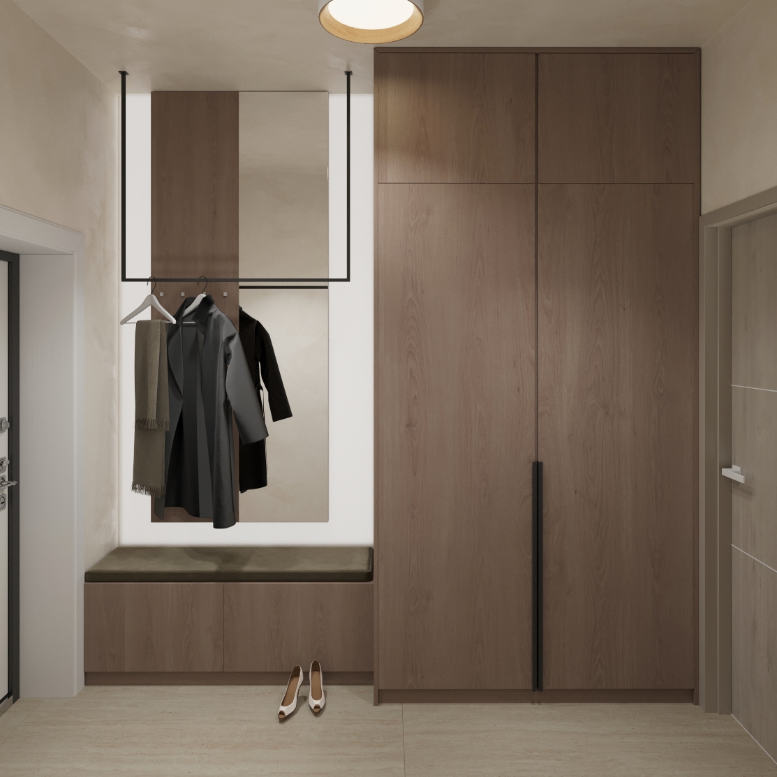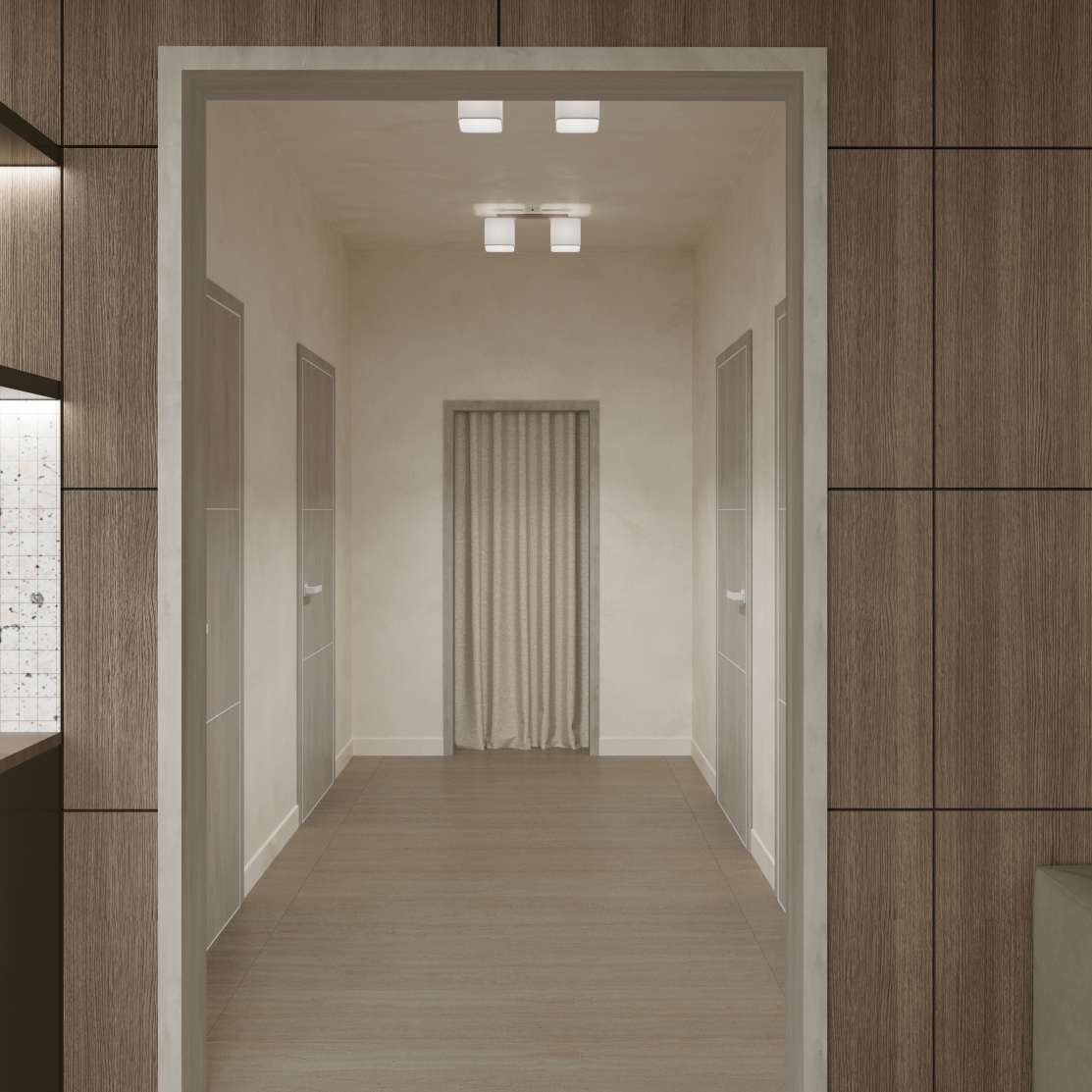Напольное покрытие: керамогранит, с функцией тёплого пола.