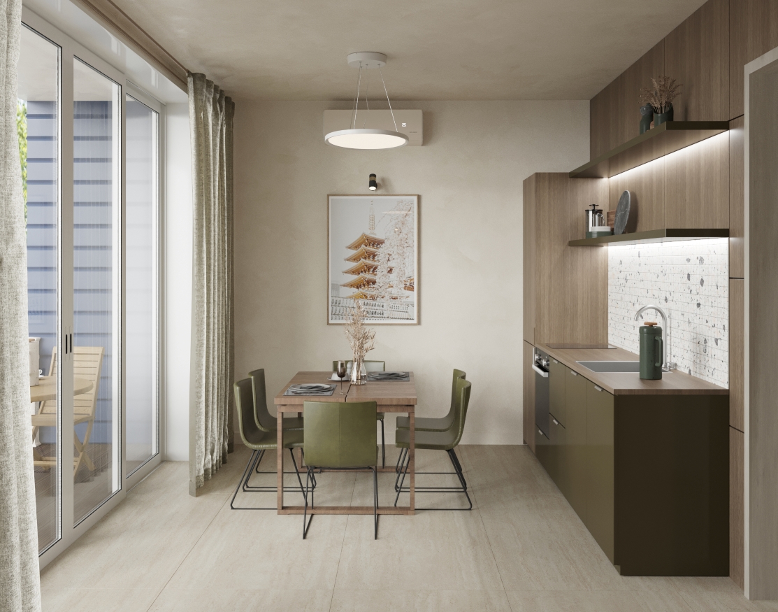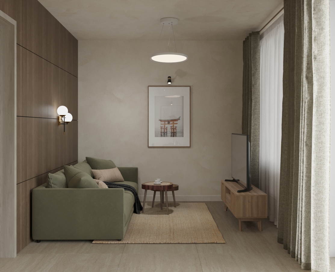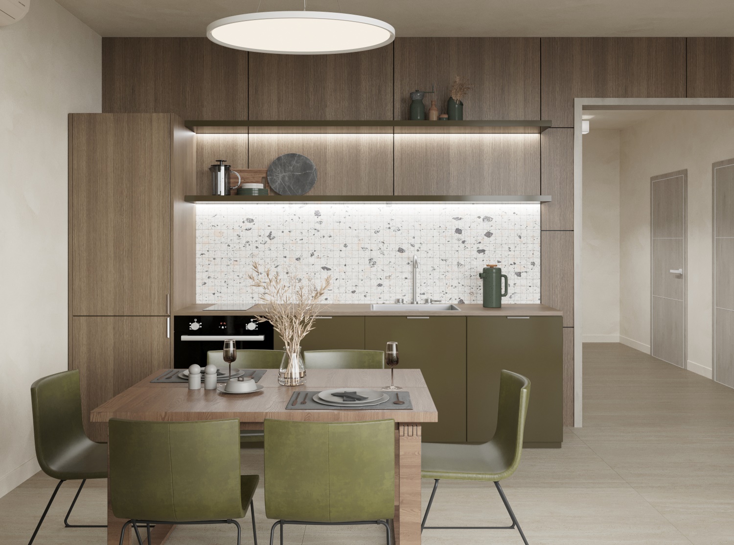 Напольное покрытие: керамогранит, с функцией тёплого пола.